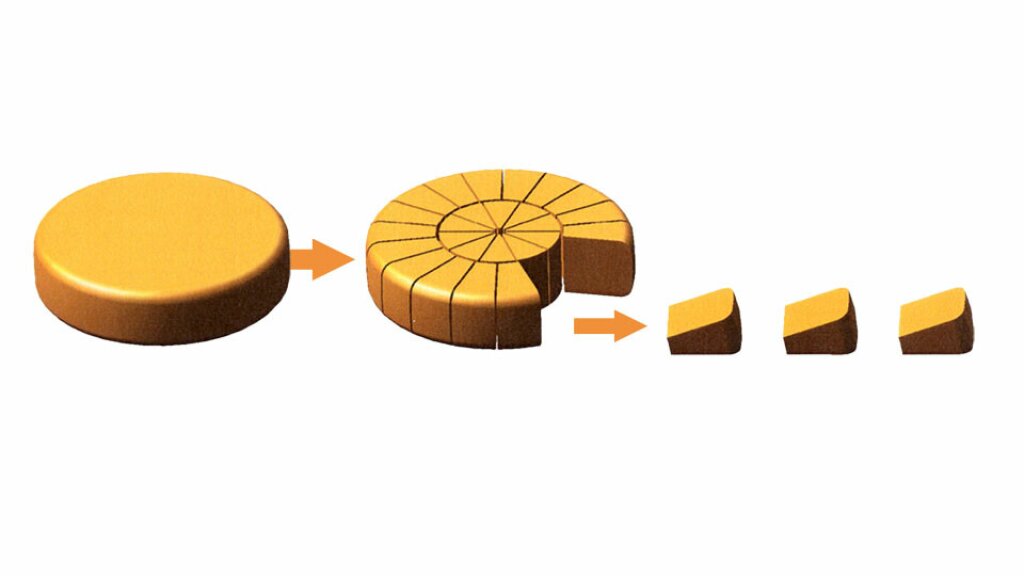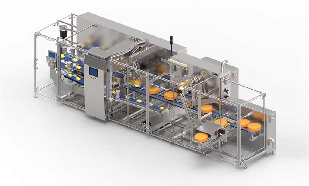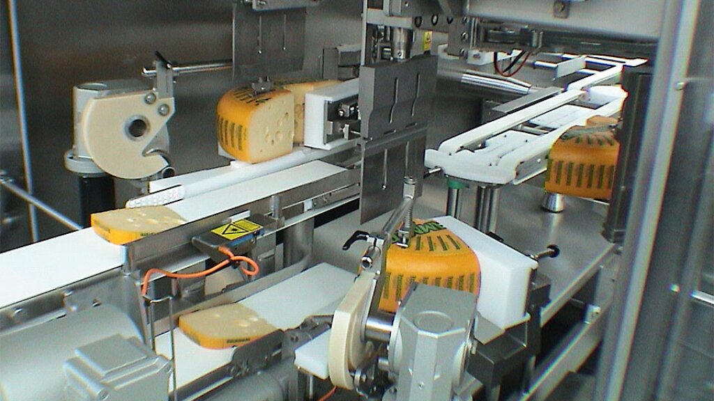 Spitzensegmente – sowohl von der Optik als auch vom Gewicht. Jeder Laib wird vermessen und gewogen und anschließend im Einzelschnitt in die gewünschte Portionsgröße geschnitten. Die Segmente verlassen hintereinander ausgerichtet den SC 90 und können automatisch der Verpackungsmaschine zugeführt werden.